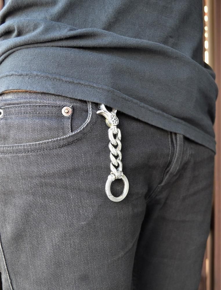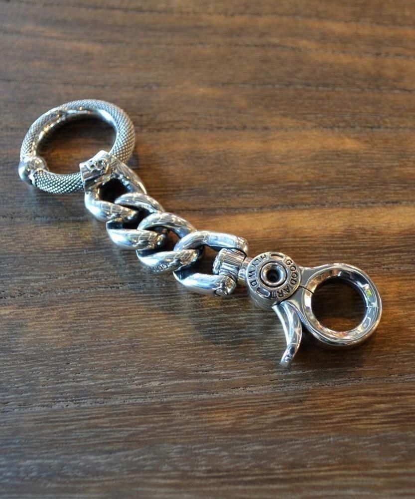 ロブスター型クリップと重厚感のあるオリジナルデザインの喜平リンクを組み合わせたキーチェーン。クリップ部分は開閉が滑らか。また、360度回転するので使い勝手も良く、腰回りを上品に演出してくれます。