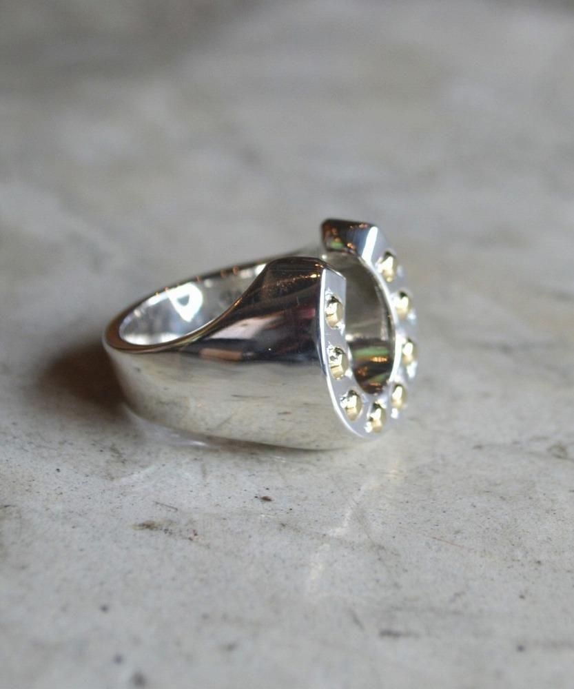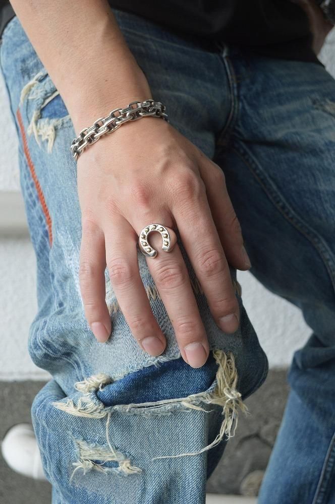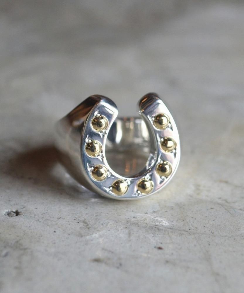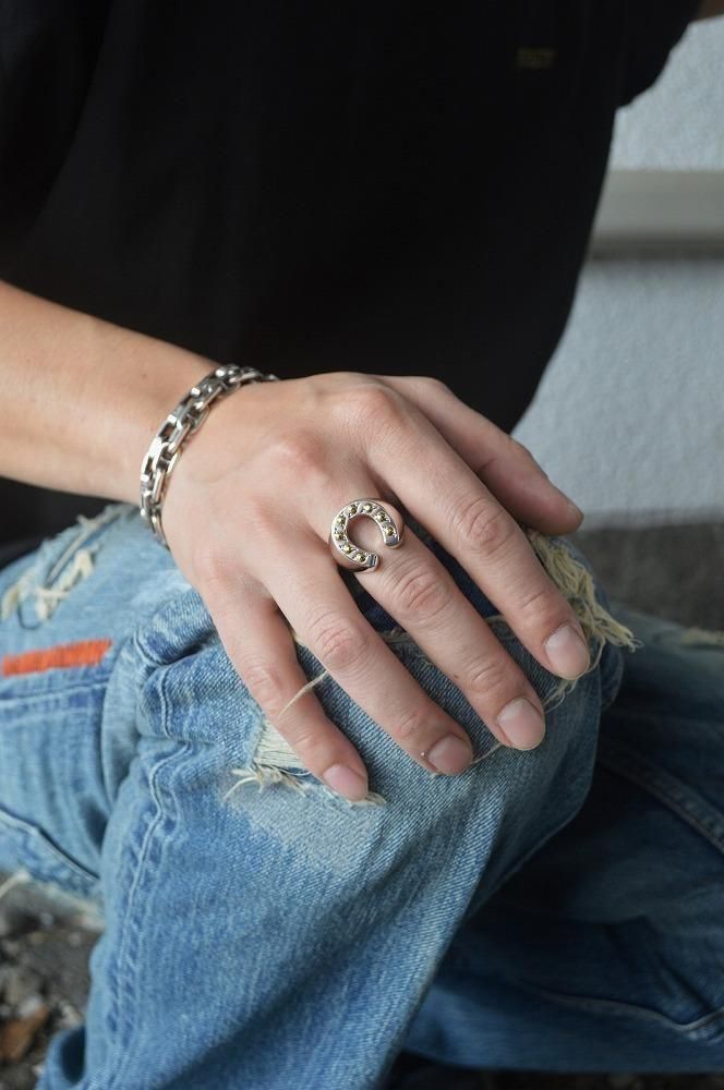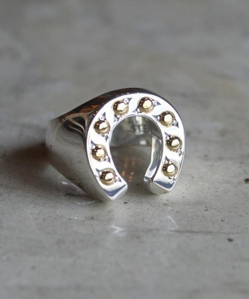 幸運を受け止めると言われるU字型のホースシュー(馬蹄、蹄鉄)をデザインしたリング。シンプルなフォルムが大人の雰囲気を醸し出します。