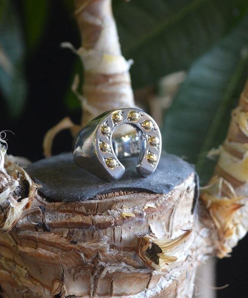 ホースシュー リング | スターリングシルバー with 18Kイエローゴールド - A
