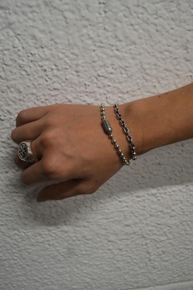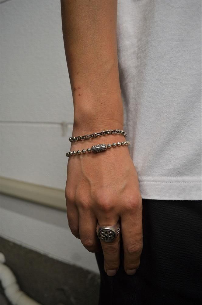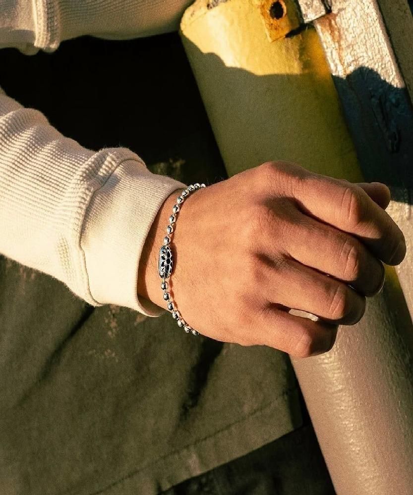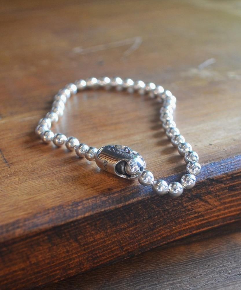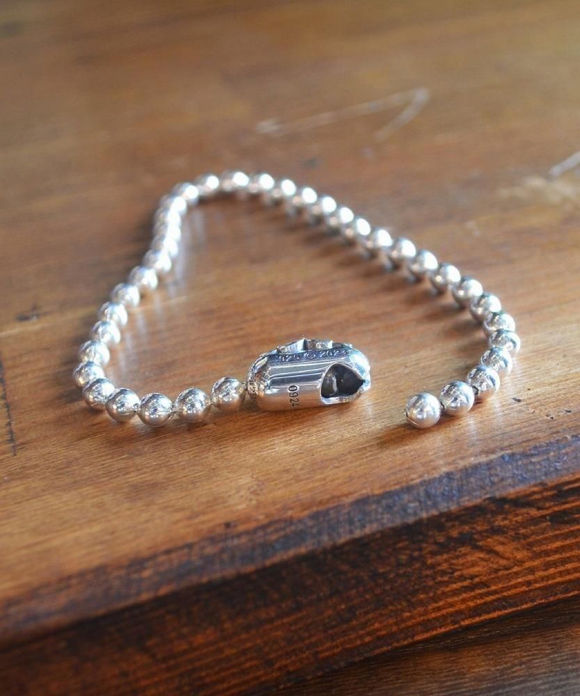 シンプルなボールチェーンタイプのブレスレット。" MADE IN USA "のボールチェーンと特殊なギミックを搭載したブランドオリジナルデザインのコネクタの組み合わせにより、シンプルながらメリハリの効いたブレスレットに仕上がっています。ボールチェーンの直径は4.5mmと細身なので重ね着けにも最適です。