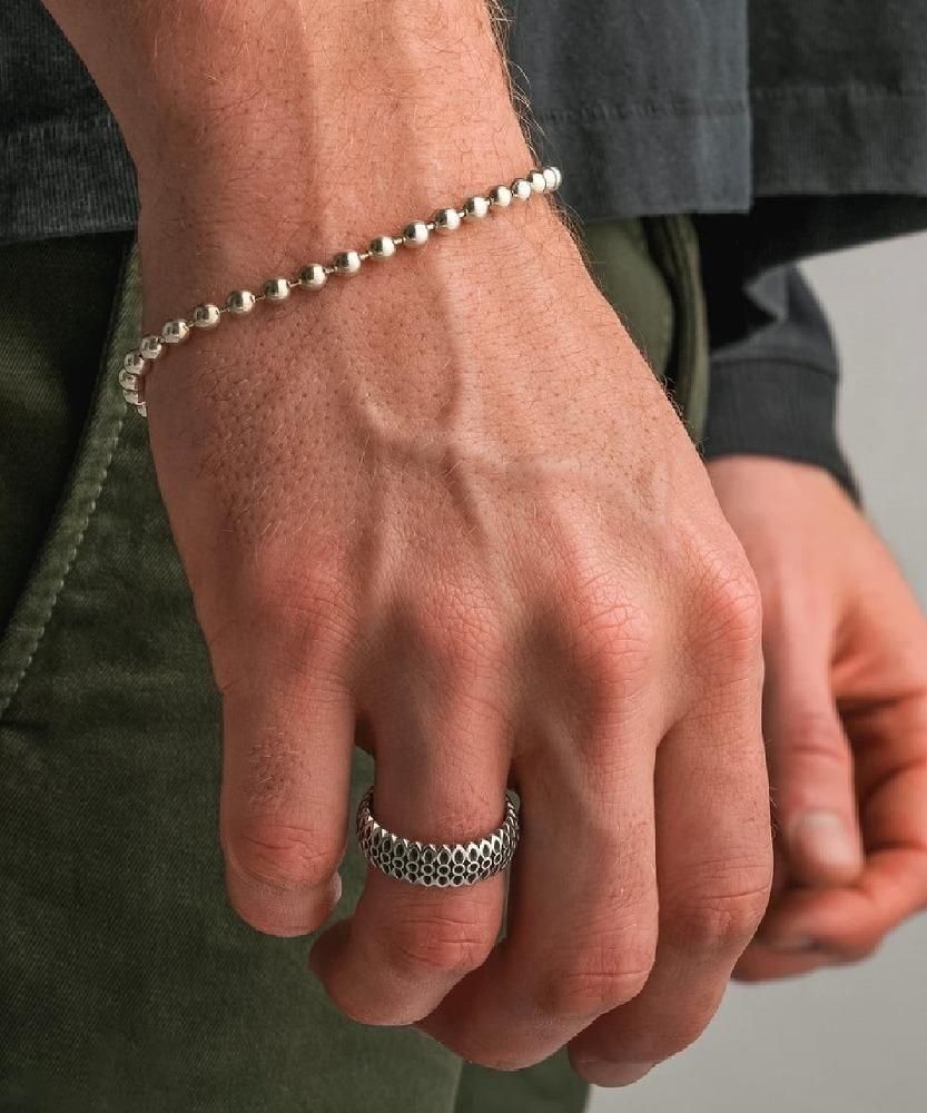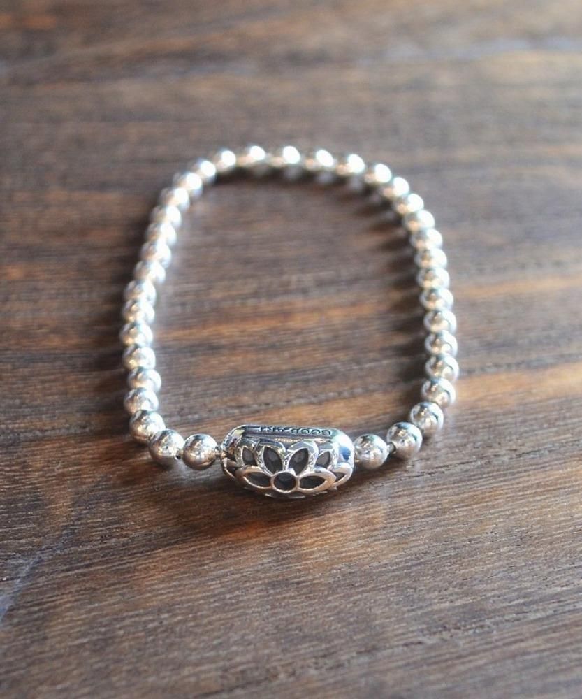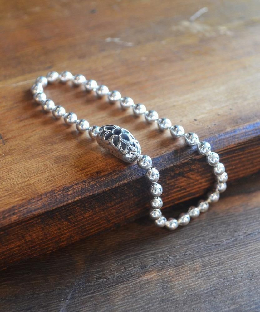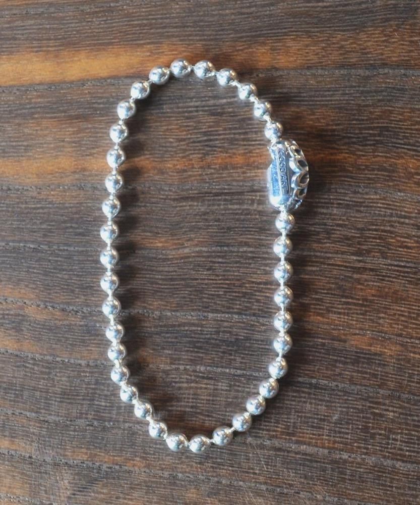シンプルなボールチェーンタイプのブレスレット。" MADE IN USA "のボールチェーンと特殊なギミックを搭載したブランドオリジナルデザインのコネクタの組み合わせにより、シンプルながらメリハリの効いたブレスレットに仕上がっています。ボールチェーンの直径は4.5mmと細身なので重ね着けにも最適です。