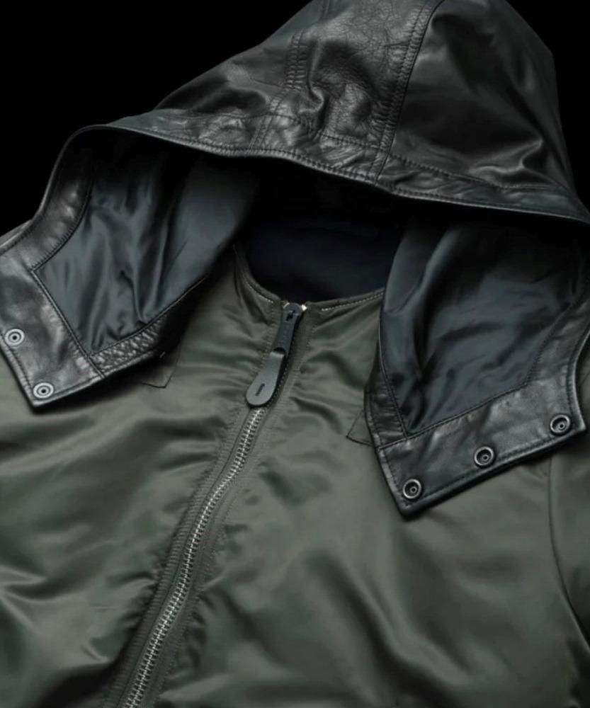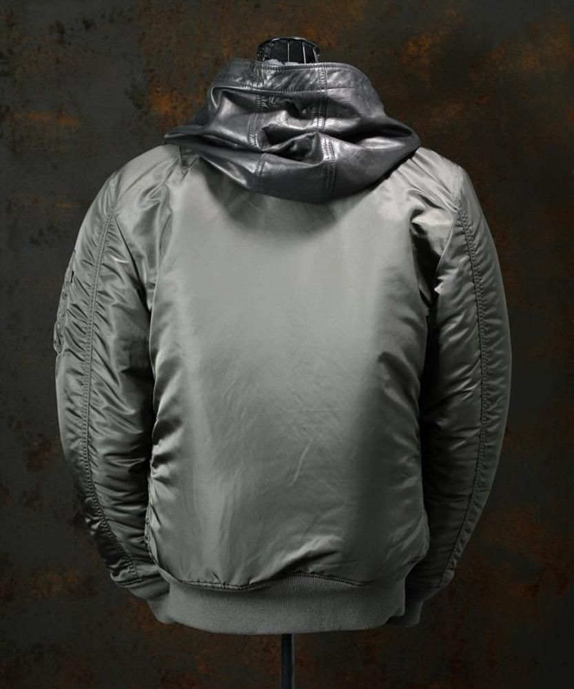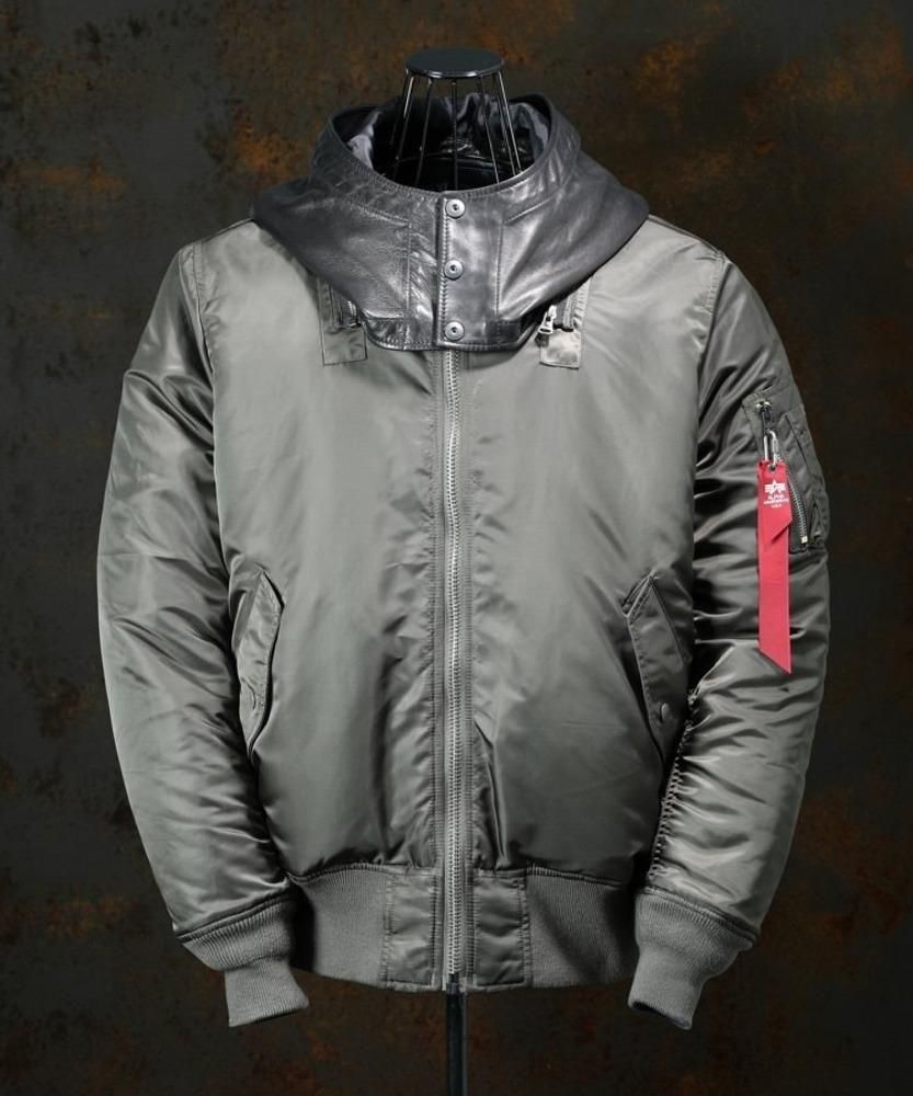 1950年代中期に採用されたインターミディエイトゾーン(-10〜10 度)向けの飛行服、一切の無駄を排したフライトジャケットの完成形としてミリタリーウェアの指標ともされているアルファのUSスペックMA-1をベースに、シルエットを調整変更。着丈を適度に長く設計し横幅の膨らみを抑えたすっきりとしたシルエット設計になっています。保温性を高めるジッパー内側の比翼や、袖のユーティリティーポケットなど、アルファならではの本物のディテールはそのままに、リバーシブル仕立て。表裏共に表面に使用される肉厚でハリコシのしっかりとしたタフなナイロン地を使用しています。また、袖リブにまで拘りリバーシブル仕様による表裏異なるカラーに合わせたリバーシブル編みにて袖リブを作り上げています。目を引く大胆に配したレザーフードは、バックラッシュにて製作。ハリ感がありつつも程よく柔らかさのあるジャパンホースレザーを採用し、裏地も配備しています。フードに関してはファスナーによる脱着可能な仕様になっており、インナーのシルエットによってお好みで着脱しご着用いただけます。左腕に付いているアルファインダストリーズを象徴する赤タグと一所にバックラッシュレザータグを装着。魅せることを前提とし表裏で異なる配色としたダブルフェイスレザーを使用しています。アルファブランドの雰囲気を残しつつ、バックラッシュ仕様に仕上げた特別な一着に仕上がっています。