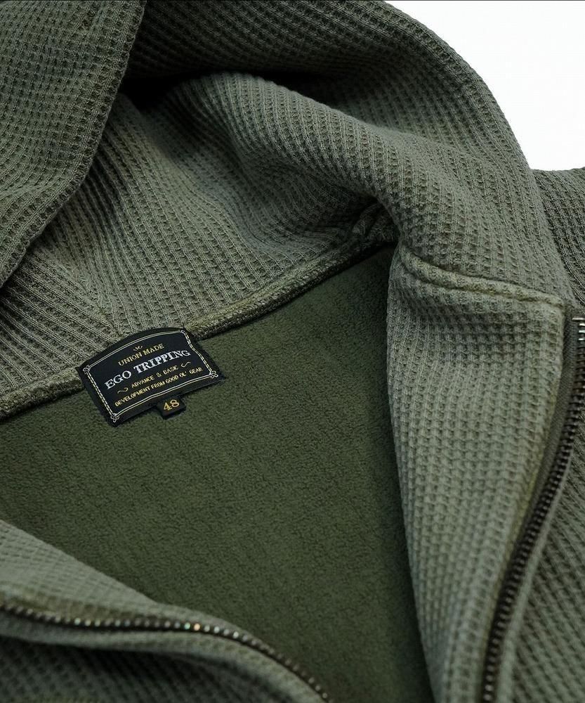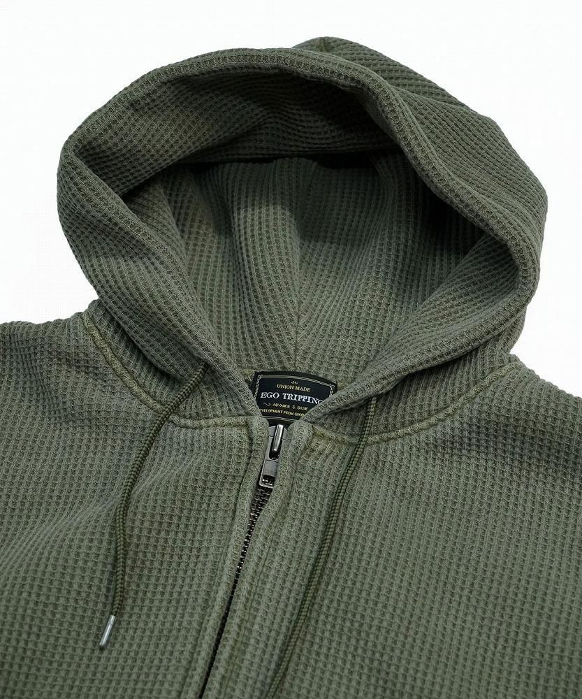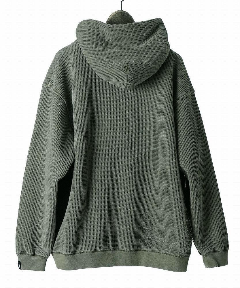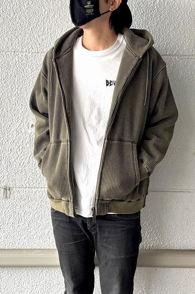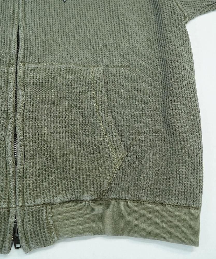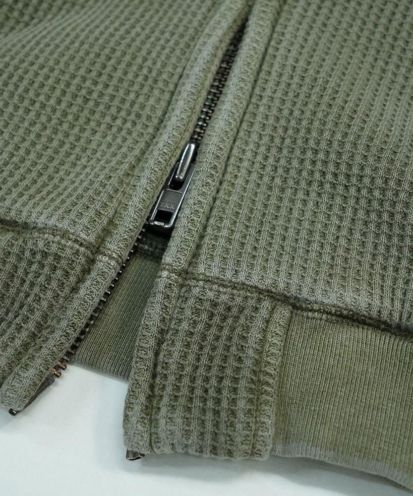一見すると普通のワッフルジップパーカーですが、袖を通した瞬間にわかる、裏地のフェイクファーの心地よさをぜひ体感してみてください。