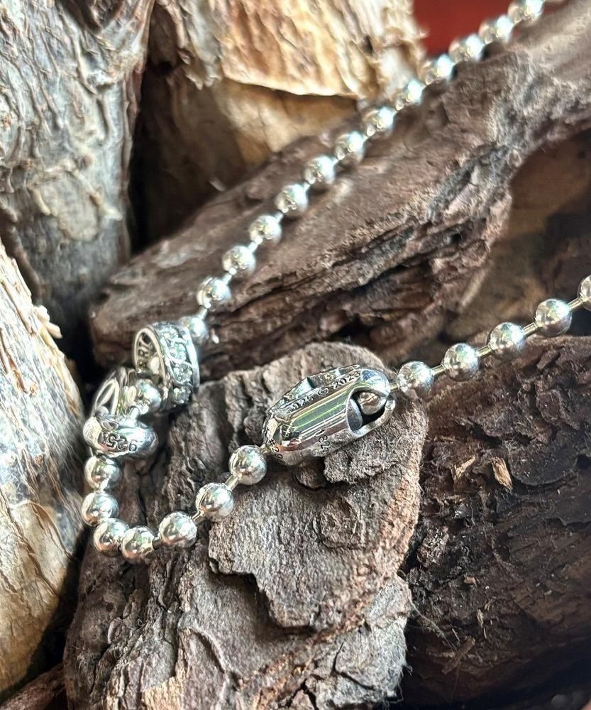 MADE IN USAのボールチェーンと特殊なギミックを搭載したブランドオリジナルデザインのコネクタの組み合わせによりシンプルながらメリハリの効いたネックレスに仕上がっています。
