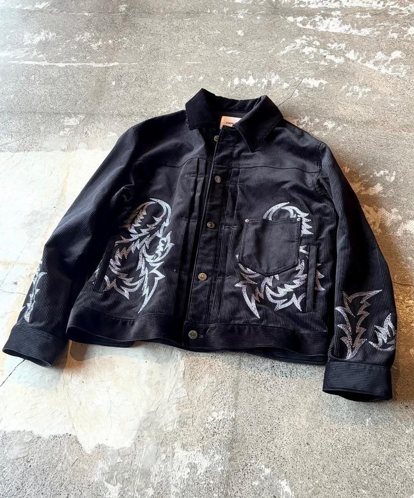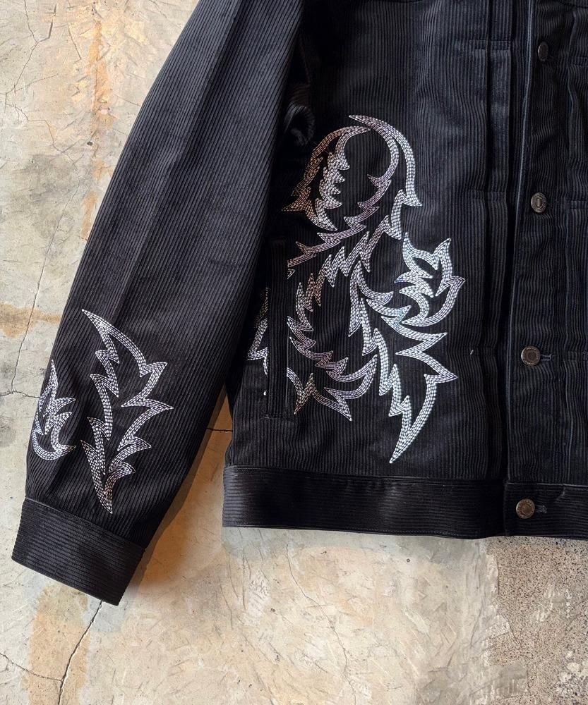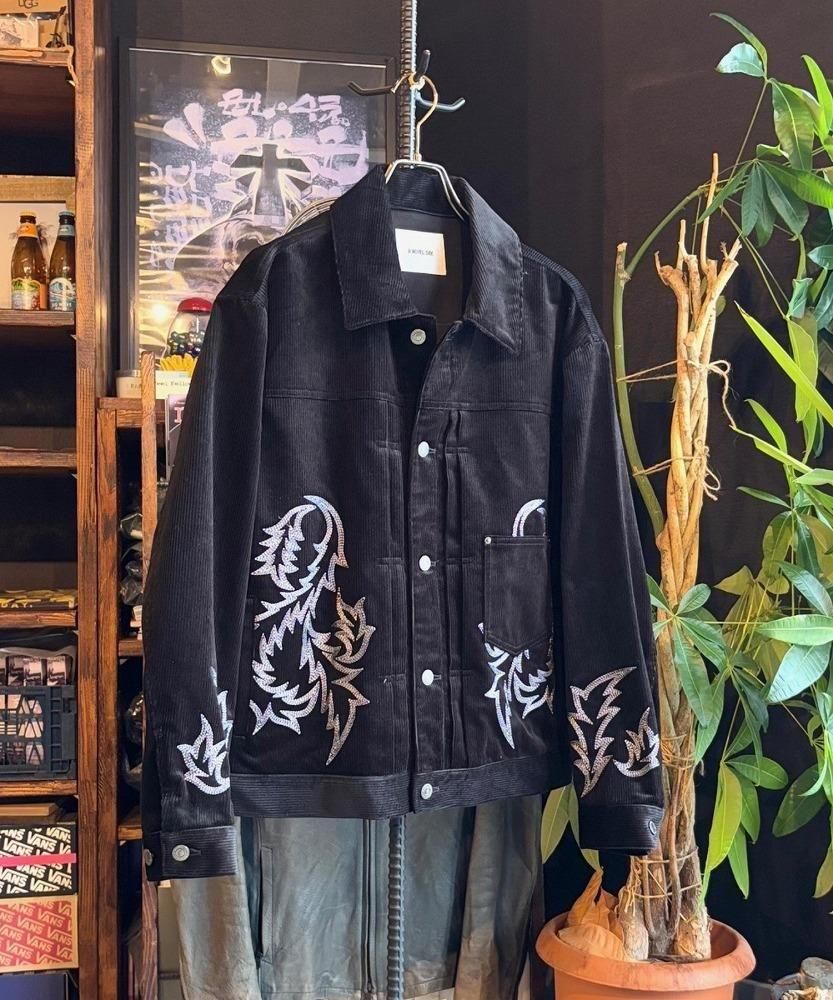 コーデュロイジャケットに刺繡が施されたブルゾン