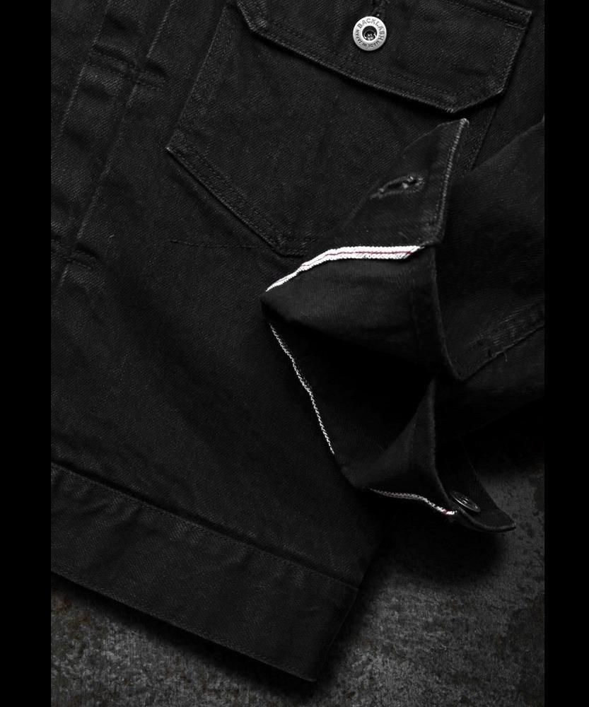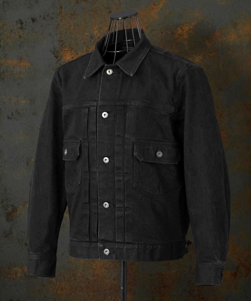 タテ7番黒糸、ヨコ8番黒糸を使用し、タテ糸ヨコ糸の太さを変えて織り上げたストレッチ混の、" HIROSHIMA (広島)セルビッチデニム "をベースマテリアルに採用しております。"ワンウォッシュブラック"に関しては、ヨコ糸も黒糸を用いることでシンプルにワンウォッシュを施した際にも、濃い黒の色は残り長くご着用いただく上でも持続性のある黒デニムに仕上がっています。