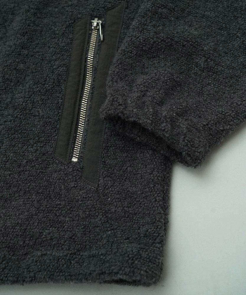 高級なウール混のパイルボアを贅沢に使用しながらも、あえてボリュームを抑えることで、さっと羽織れる軽快な着心地を実現しました。